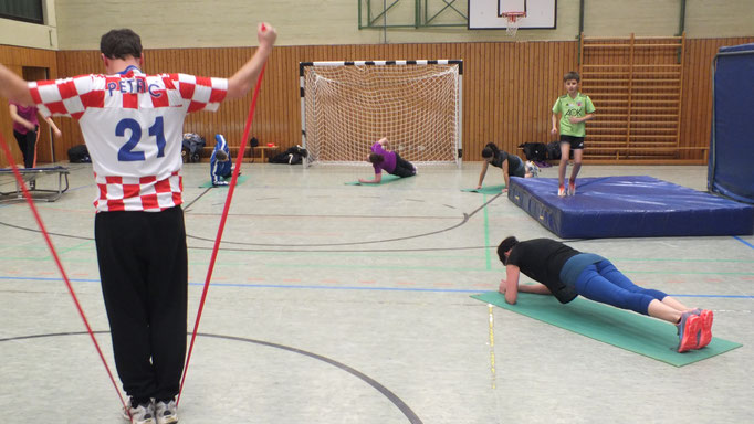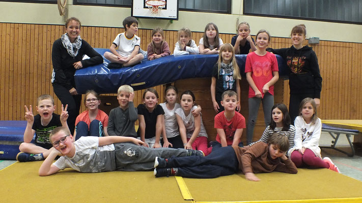 Hoch geht es her, wenn sich die Kinder des 1. bis 4. Schuljahres zum Kinderturnen in der Turnhalle treffen. Ziel ist es, die Kinder weiter in den Disziplinen Beweglichkeit, Koordination und Geschicklichkeit zu trainieren. Darüber hinaus sollen sie sich auch mal austoben können. Spaß und Freude stehen auch hier im Vordergrund. Dies wird von den Kindern mit Begeisterung angenommen. Die Übungsleiterin Simone Reuter, hat immer alle Hände voll zu tun, um die „Rasselbande“ im Griff zu halten. Spiele wie Brennball und Völkerball werden angeboten oder Geräte werden zum Aufstellen eines Turn-Parcours benutzt, in dem die Kinder nacheinander verschiedene Turnübungen durchführen. Die Kinder sind jedenfalls bei allen sportlichen Betätigungen immer eifrig bei der Sache.