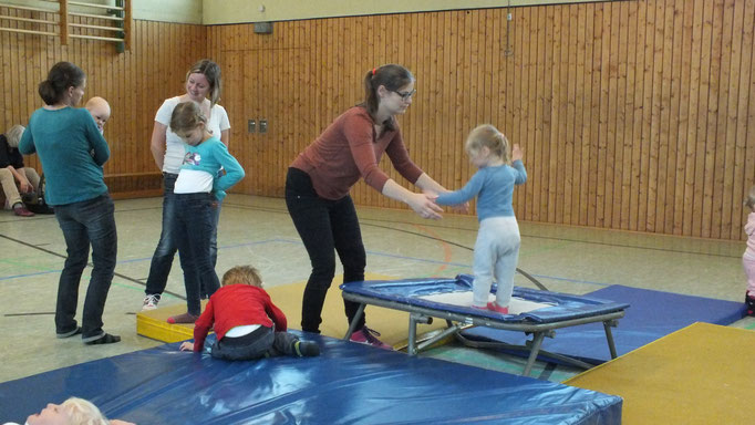 Turbulent geht es zu, wenn unsere Kleinsten im Turnverein (0 – 3 Jahre) beim Eltern-Kind-Turnen in der Lieserer Turnhalle herumsausen. Geleitet wird die Stunde von Eva Dusemund. Mit Sing-, Ball- und Laufspielen wird die Stunde begonnen. Dann werden beispielsweise mit Hilfe von Bänken, Turngeräten und Matten kleine Hindernisparks und leichte Kletterkonstruktionen aufgebaut. So wird die motorische Entwicklung der Kinder gefördert und sie werden an die Turngeräte herangeführt. Spaß an Bewegung und Spiel steht dabei im Vordergrund. Mit Hilfe der Eltern haben die Kinder zudem die Möglichkeit, größere Anforderungen zu meistern. Auch die 4 bis 6-jährigen Kinder können ihren Bewegungsdrang im Verein in Begleitung eines Elternteils bzw. Erwachsenen ausleben. Eine separate Gruppe, ebenfalls unter der Leitung von Eva Dusemund, bietet hierzu die Möglichkeit.